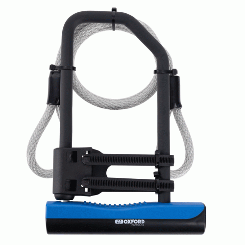 - 1.2m cable included (Duo model only 320mm). Use the U-lock to "lock" the bike to a fixed object (e.g. Oxford anchor, fence, lamp post, etc.) to prevent it from being ridden or pushed away. The cable can be used to secure the component parts such as wheels.