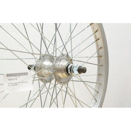 BMX 20 REAR 48 SPOKE WHEEL 14mm AXLE SILVER (TWR0514S)