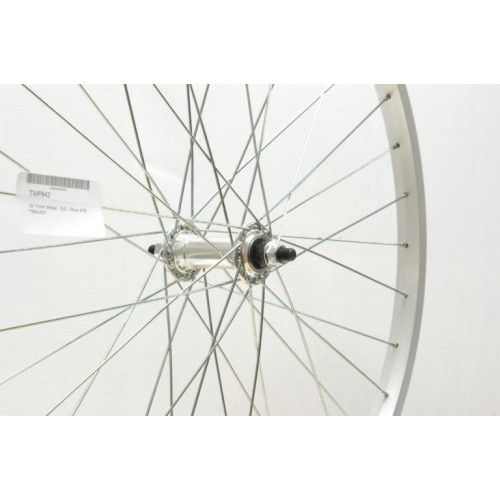 26 x 1.75 SILVER ALLOY FRONT WHEEL SOLID AXLE (TWF942)